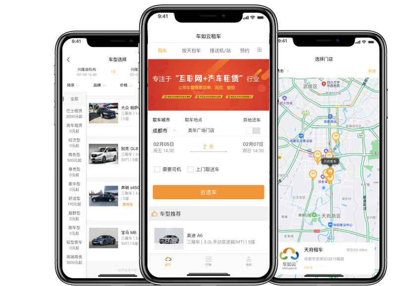 易點租車管理系統(tǒng)四大端口完美滿足各個角色需求:(1)后臺管理系統(tǒng)web端:管控客戶在線預(yù)訂,租賃合同簽署,提車,還車,結(jié)算及業(yè)務(wù)過程中可能出現(xiàn)的替換車和租期變更情況。(2)門店端app:提供移動版簡約管理系統(tǒng),提車、還車、送車、查詢、掃牌照一鍵到位,方便管理人員隨時隨地完成業(yè)務(wù)操作。(3)客戶端:提供app、web、微信小程序、支付寶小程序、微信公眾號等多種方式,方便個人\企業(yè)客戶在各個場景下進行預(yù)訂。 (4)司機端app:方便司機服務(wù)客戶